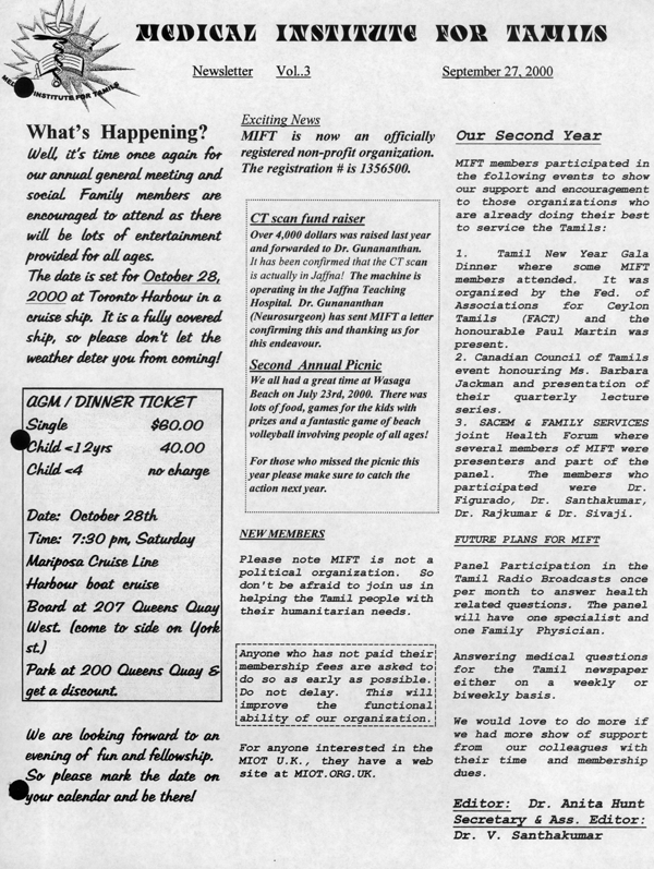"Medical Institute For Tamils" (MIFT) is an officially registered non-profit cooperation representing Tamil speaking medical and dental professionals in North America.